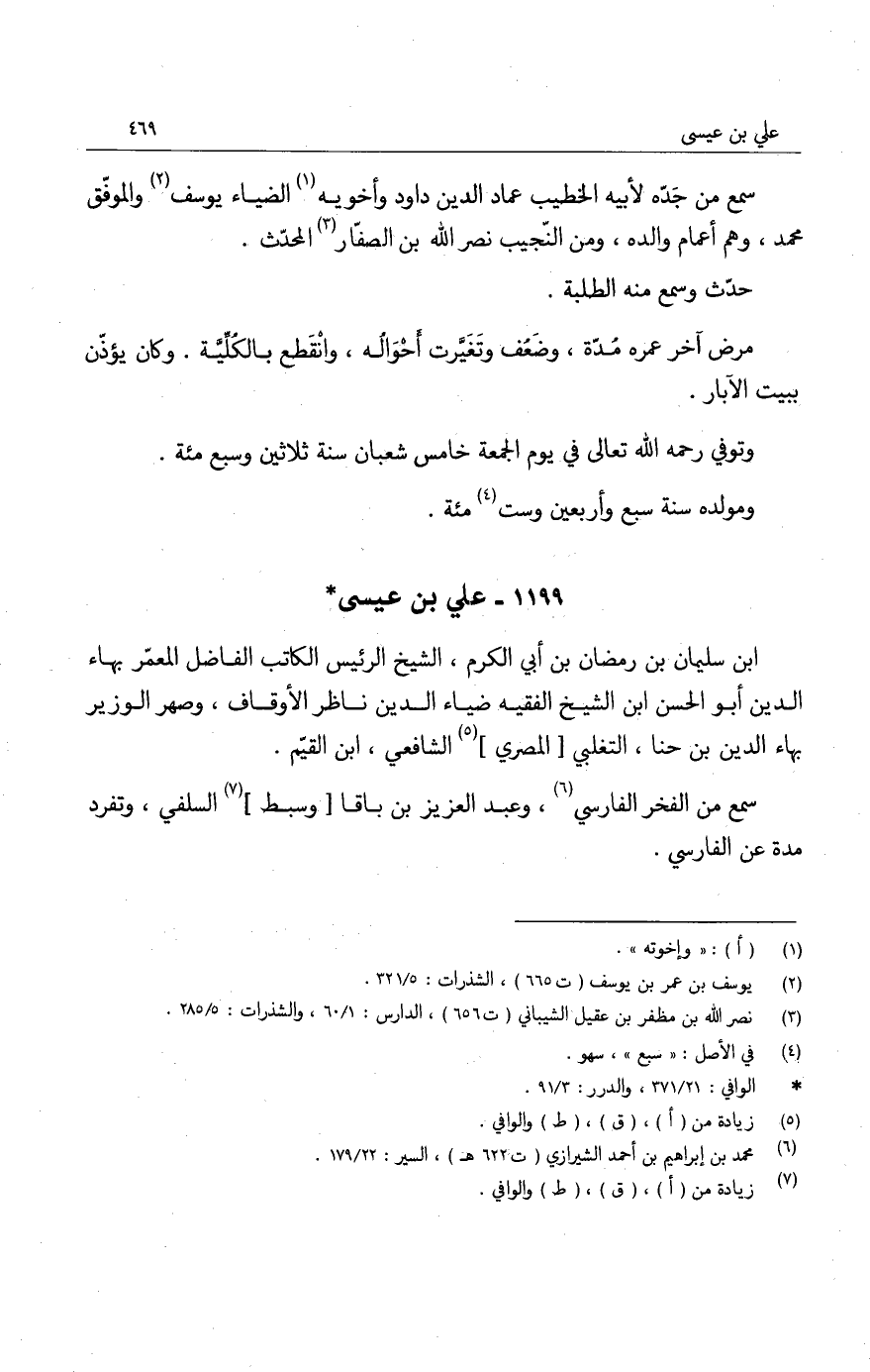 وتوفي رحمه الله تعالى في سادس عشري القعدة سنة عشر وسبع مئة.