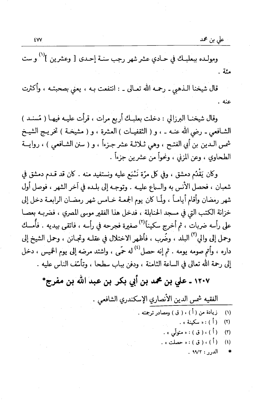 كان جيد القريحة، ذكي الفطرة الصحيحة. له مشاركات في أصول دين وفروع، ودخول في النحو وشروع، واختصر الروضة، وملأ من معرفتها حوضه، وكابد من الفقر أنواعاً، أفضت به إلى أن تجرد وصار عرياناً، ولبس من القطوع والشدائد ألواناً، إلى أن أحسن إليه قاضي سيوط أبو الحجاج يوسف، وأطلقه من فقر كن في قيده يرسف. وأقرأ ولده أبا مدين شعيباً، وكشف عن ذهنه ريناً وريباً، ثم إنه صحب فخر الدين ناظر الجيش، ففاز بلذة العيش، وولاه قضاء بلده فوه، وأبرز سعده إلى الفعل بعد القوة.