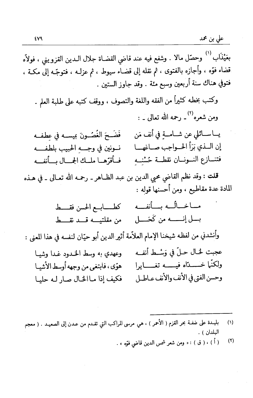 وكانت له يد طولى في حل الألغاز، ونظم كثير يشهد له أنه في حربها وحربها أقوى مجاهد وأجل غاز، وشعره يطرب الثكالى، ويدع النجوم السائرات السافرات من حسنه خجالي. هذا إلى سكون وعفة، واتضاع لا يعادله معه أحد في كفه.