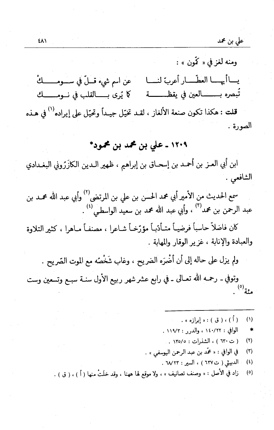 ومولده سنة إحدى عشرة وست مئة. هكذا رأيت كمال الدين الأدفوي ذكر هذه الوفاة وهذا المولد، ووافقه على ذلك شيخنا الذهبي. والظاهر أن هذا هو الصحيح، لأن من يولد سنة إحدى عشرة وست مئة، يمكن وفاته سنة سبع وتسعين وست مئة.