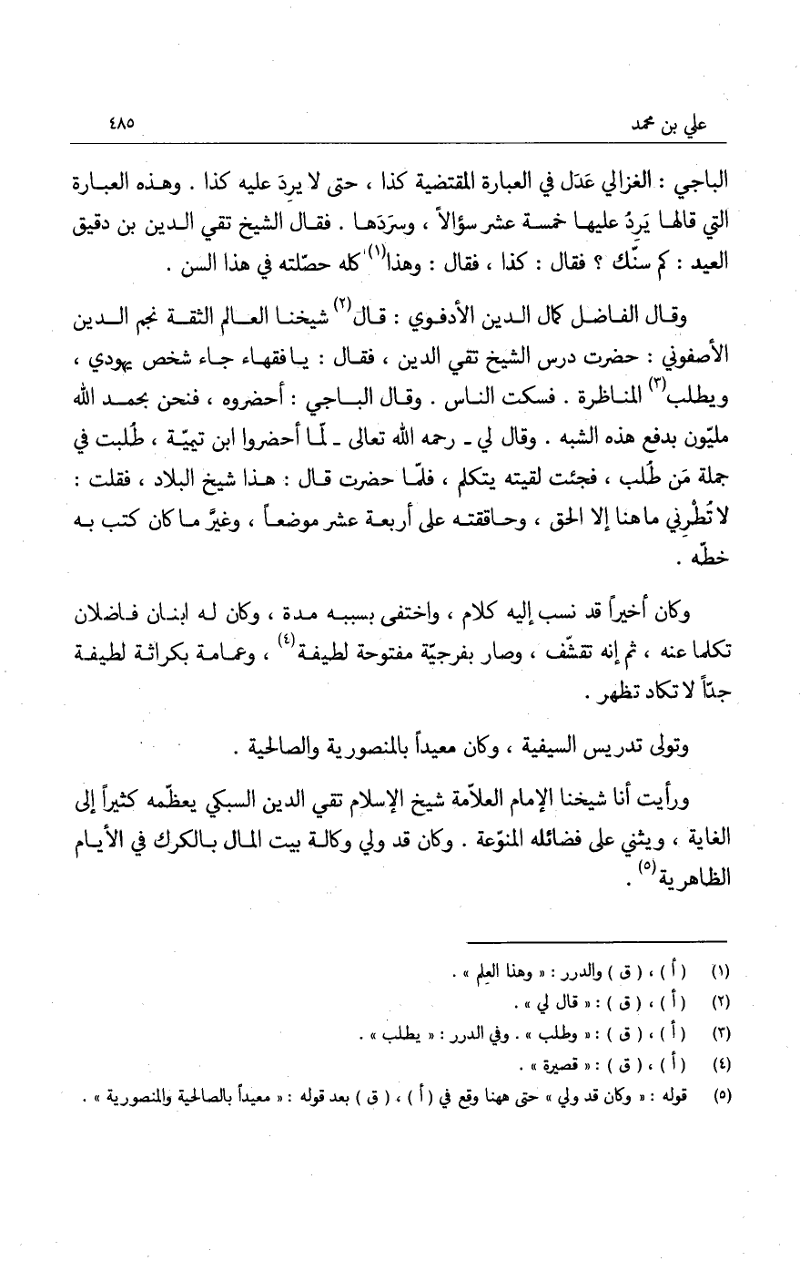 وكان شيخنا العلامة أثير الدين أبو حيان يثني عليه كثيراً. أخبرني قال: قرأ عليه يسيراً من مختصره في أصول الفقه، وسمعن عليه دروساً، وأنشدني من لفظه لنفسه: