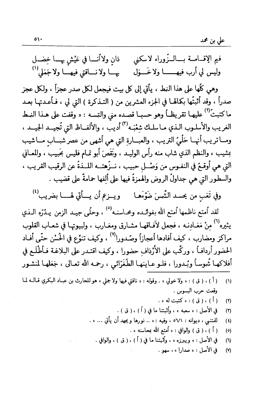 ديوانه طغره، وعلم أن روض نظمه إن كان فيه زهرة فهذا أفق أطلع في كل منزلة منه شمساً وبدراً وزهرة، فالله يعز حمى الأدب منه بفارس الجولة، ويديم لأيامه بفوائده خير دولة، ويلم شعث بنيه الذين لا صون لهم ولا صولة، ويمتعهم بمحاسنه التي لا يذكر معها أبيات عزة، ولا أطلال خولة، بمنه وكرمه إن شاء الله تعالى.