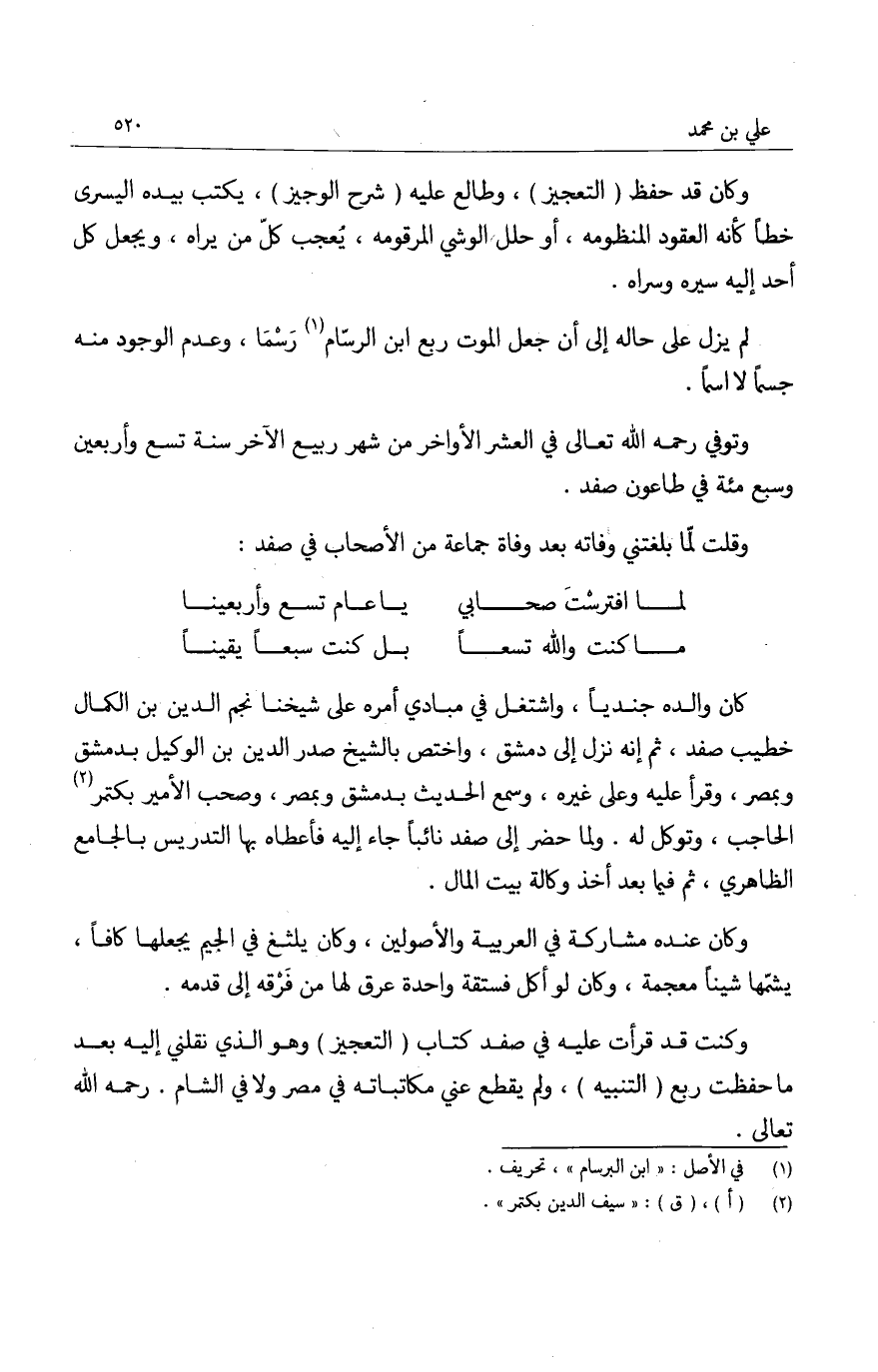 كان أعجوبة من أعاجيب الزمان في ذكائه، وغريبة من غرائب الدهر تشرق سماء الفضل بذكائه، دقيق الغوص على المعاني شديد التنقيب على ما يتصف به من العلوم ويعاني، خاض بحار المنقول، وقطع مفاوز المعقول، خصوصاً فن الرياضي وما يتشعب فيه، والكلام على أسرار الحروف وما يلائم طبعه أو ينافيه. له قدرة على تأليف المناسبات واستحضار الأشباه والنظائر في المطارحات والمقايسات، تام الشاكلة، وافر الجلالة: