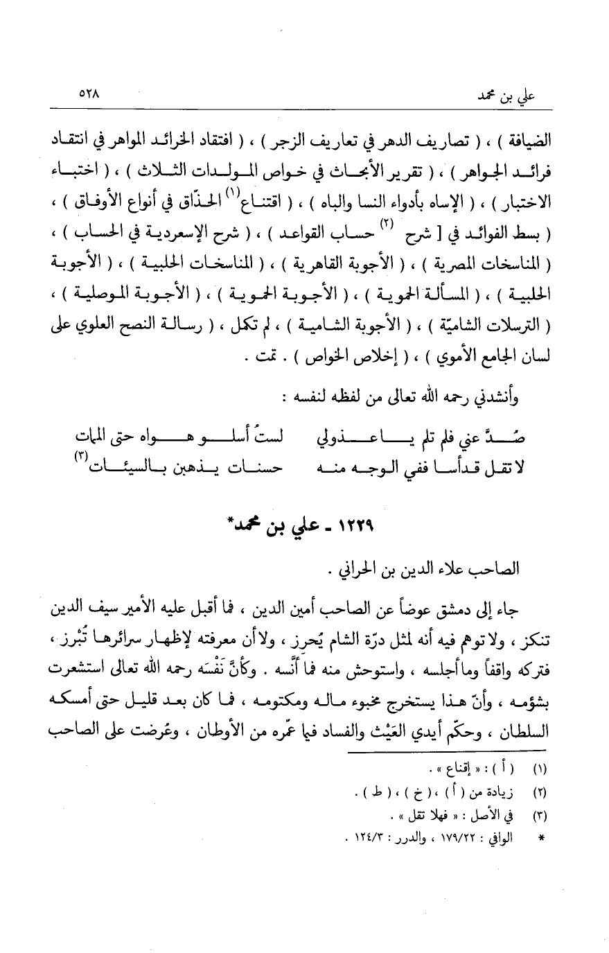 علاء الدين حواصله وأمواله، وآلات بيوته وغلاله، فلم يدع خبيثاً إلا أظهره، ولا مكتوماً إلا استخرج مضمره، حتى قال مماليكه: أين كان لنا هذا مخبوءاً، وما نرى هذا الصاحب إلا عدواً.