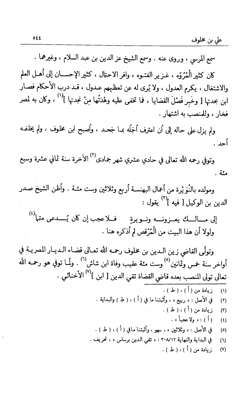 وتوفي رحمه الله تعالى ثالث عشر صفر سنة أربع وسبع مئة.