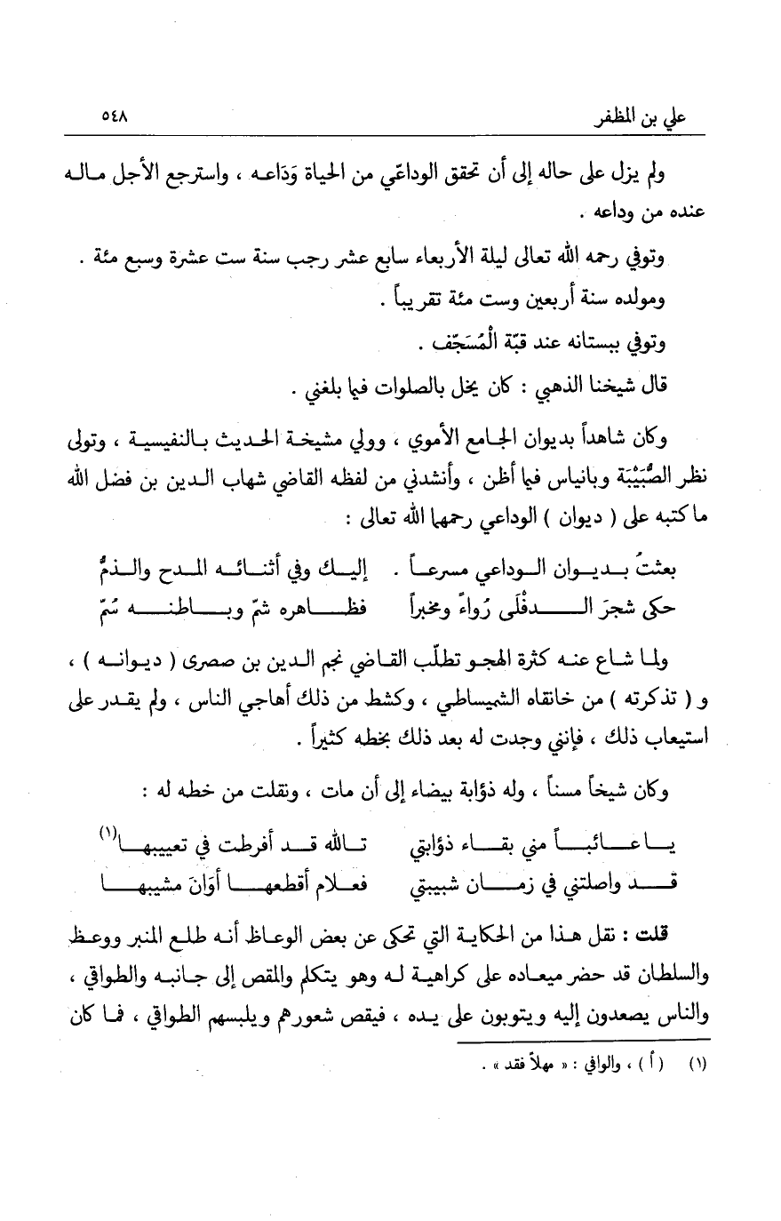 وإنما سمي علاء الدين الوداعي، لأنه كان يكتب للصاحب علاء الدين بن وداعة، ولذلك قال، ونقلته من خطه: