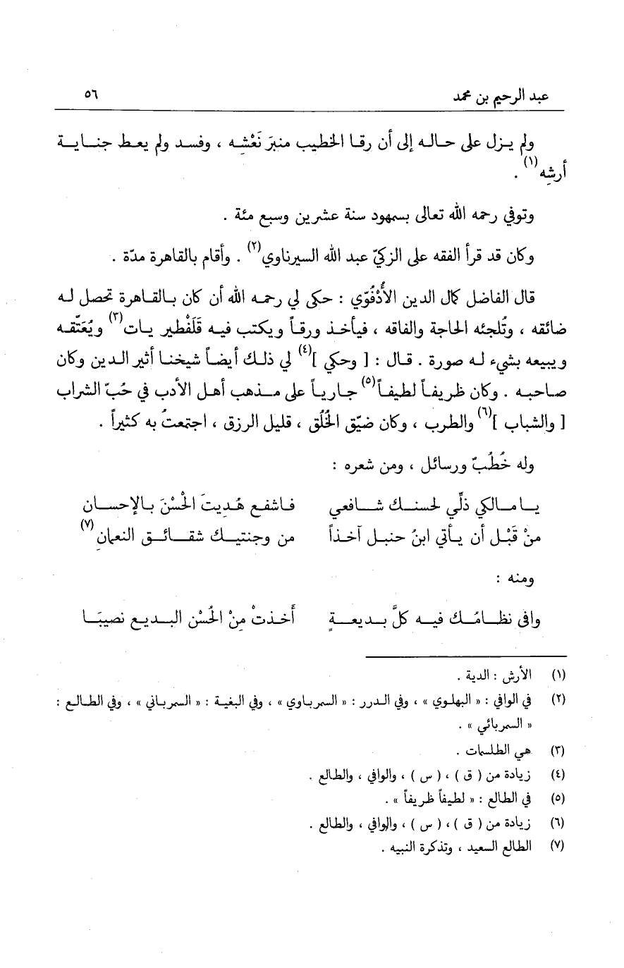 وافي نظامك فيه كل بديعة ... أخذت من الحسن البديع نصيباً