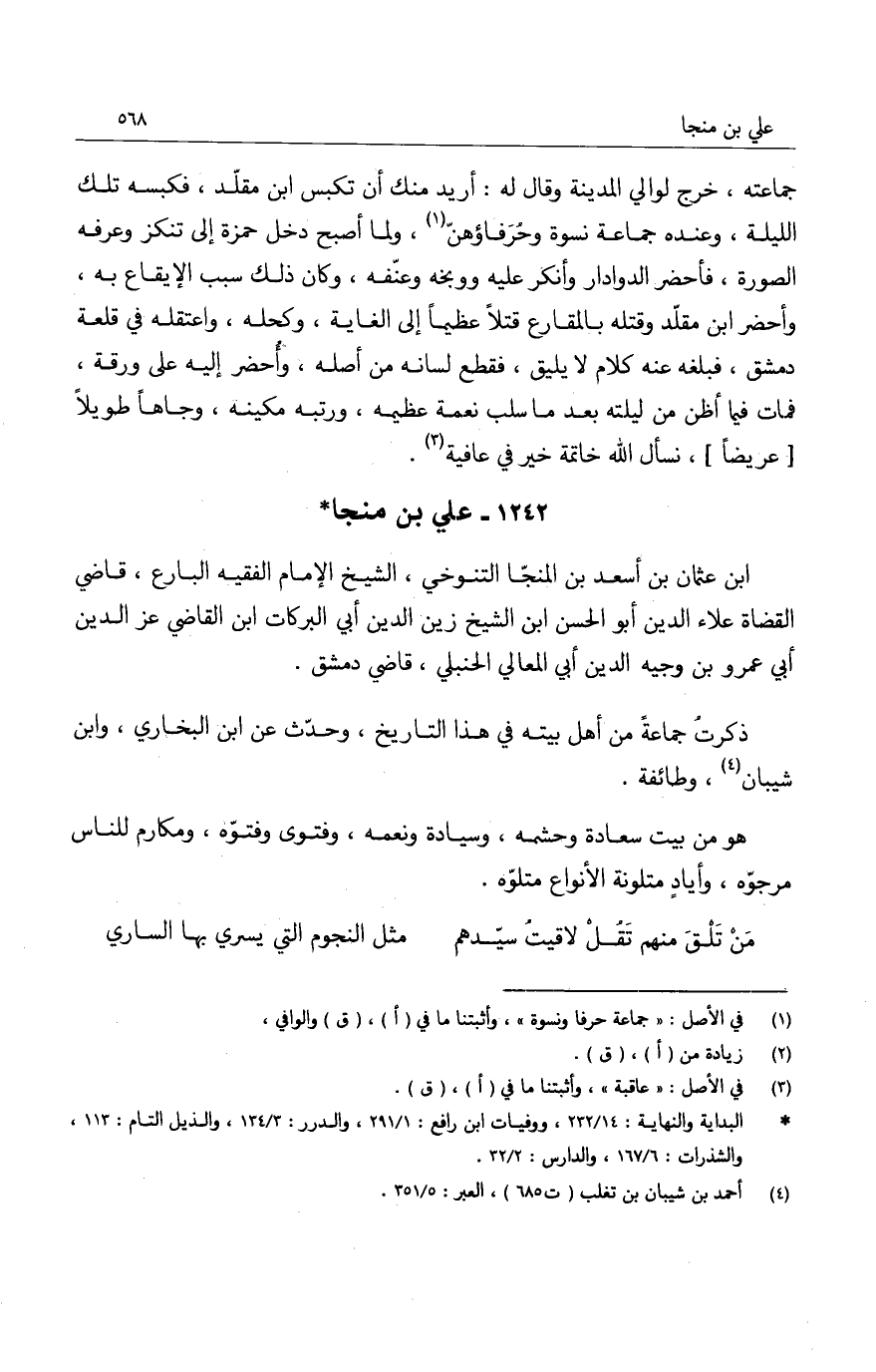 ولم يزل على حاله المرضية، وأوامره المقضية، إلى أن وقع ابن المنجا في شرك المنية وما نجا، وكاد النهار يكون لقده دجا.