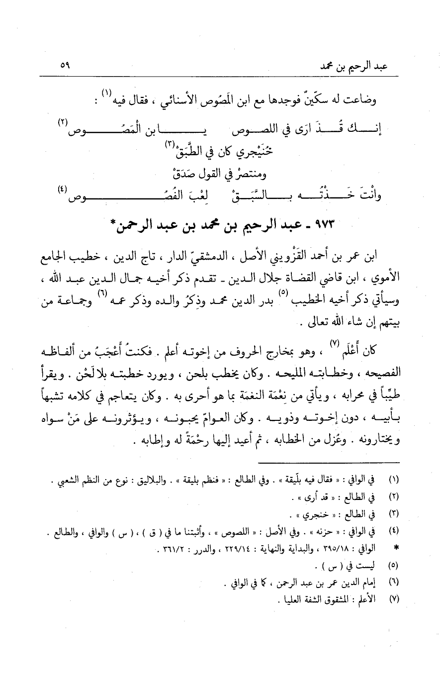 كان أعلم، وهو بمخارج الحروف من إخوته أعلم. فكنت أعجب من ألفاظه الفصيحة، وخطابته المليحة. وكان يخطب بلحن، ويورد خطبته بلا لحن. ويقرأ طيباً في محرابه، ويأتي من نعمة النغمة بما هو أحرى به. وكان يتعاجم في كلامه تشبهاً بأبيه، دون إخوته وذويه. وكان العوام يحبونه، ويؤثرونه على من سواه ويختارونه. وعزل من الخطابة، ثم أعيد إليها رحمة له وإطابة.