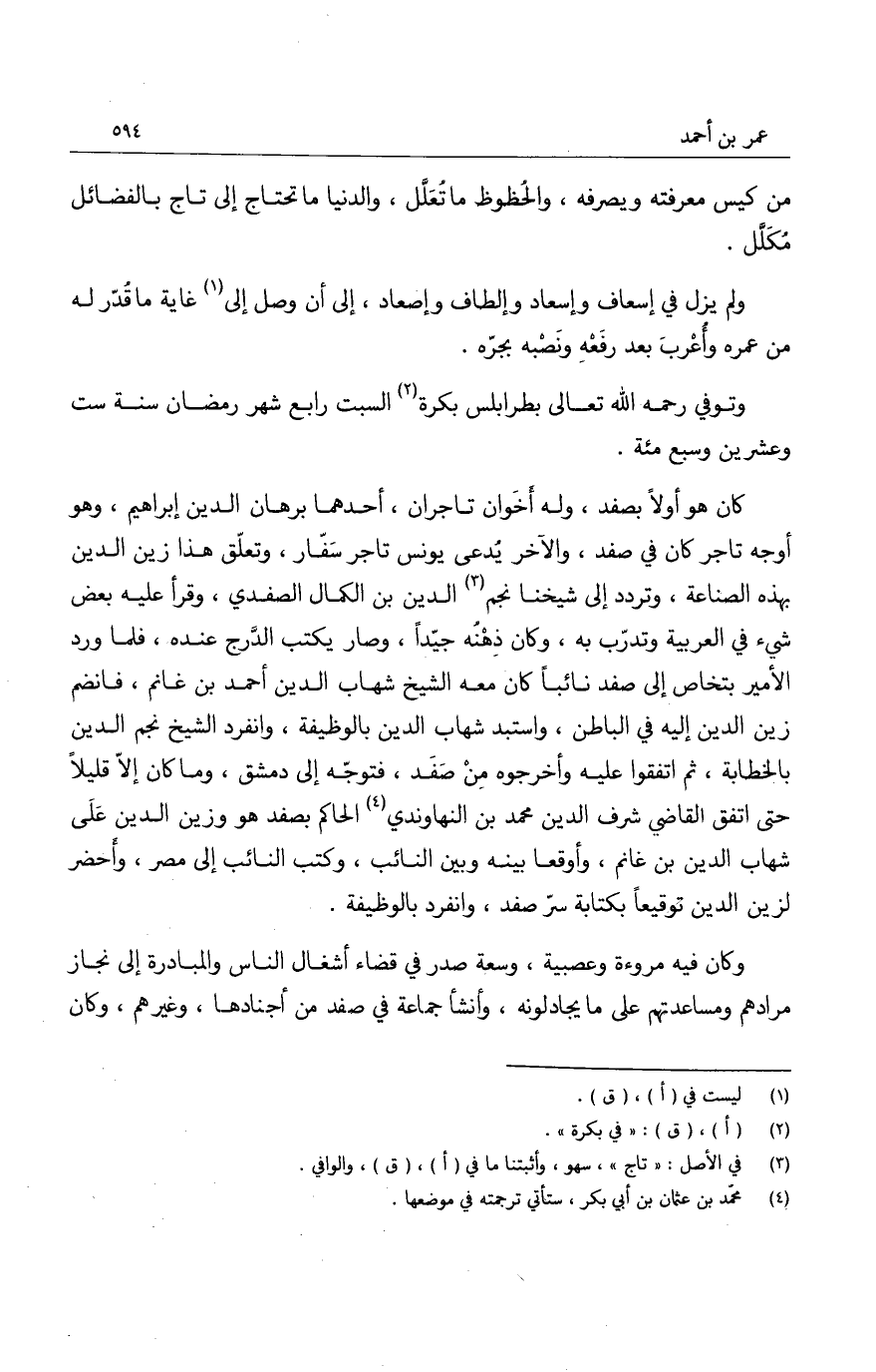 ولم يزل في إسعاف وإسعاد وإلطاف وإصعاد، إلى أن وصل إلى غاية ما قدر له من عمره وأعرب بعد رفعه ونصبه بجره.