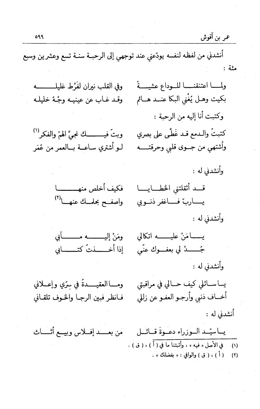 أنشدني من لفظه لنفسه يودعني عند توجهي إلى الرحبة سنة تسع وعشرين وسبع مئة:
