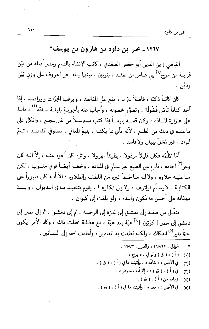 القاضي زين الدين أبو حفص الصفدي، كاتب الإنشاء بالشام ومصر أصله من نين قرية من مرج بني عامر من صفد، بنونين، بينهما ياء آخر الحروف على وزن بين ودين.