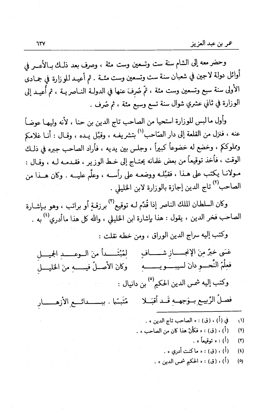 وحضر معه إلى الشام سنة ست وتسعين وست مئة، وصرف بعد ذلك بالأعسر في أوائل دولة لاجين في شعبان سنة ست وتسعين وست مئة. ثم أعيد للوزارة في جمادى الأولى سنة سبع وتسعين وست مئة، ثم صرف عنها في الدولة الناصرية، ثم أعيد إلى الوزارة في ثاني عشري شوال سنة تسع وسبع مئة، ثم صرف.