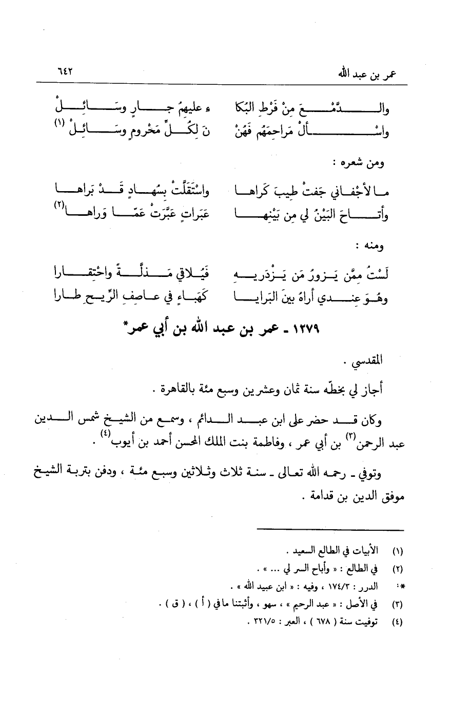ما لأجفاني جفت طيب كراها ... واستقلت بسهاد قد براها