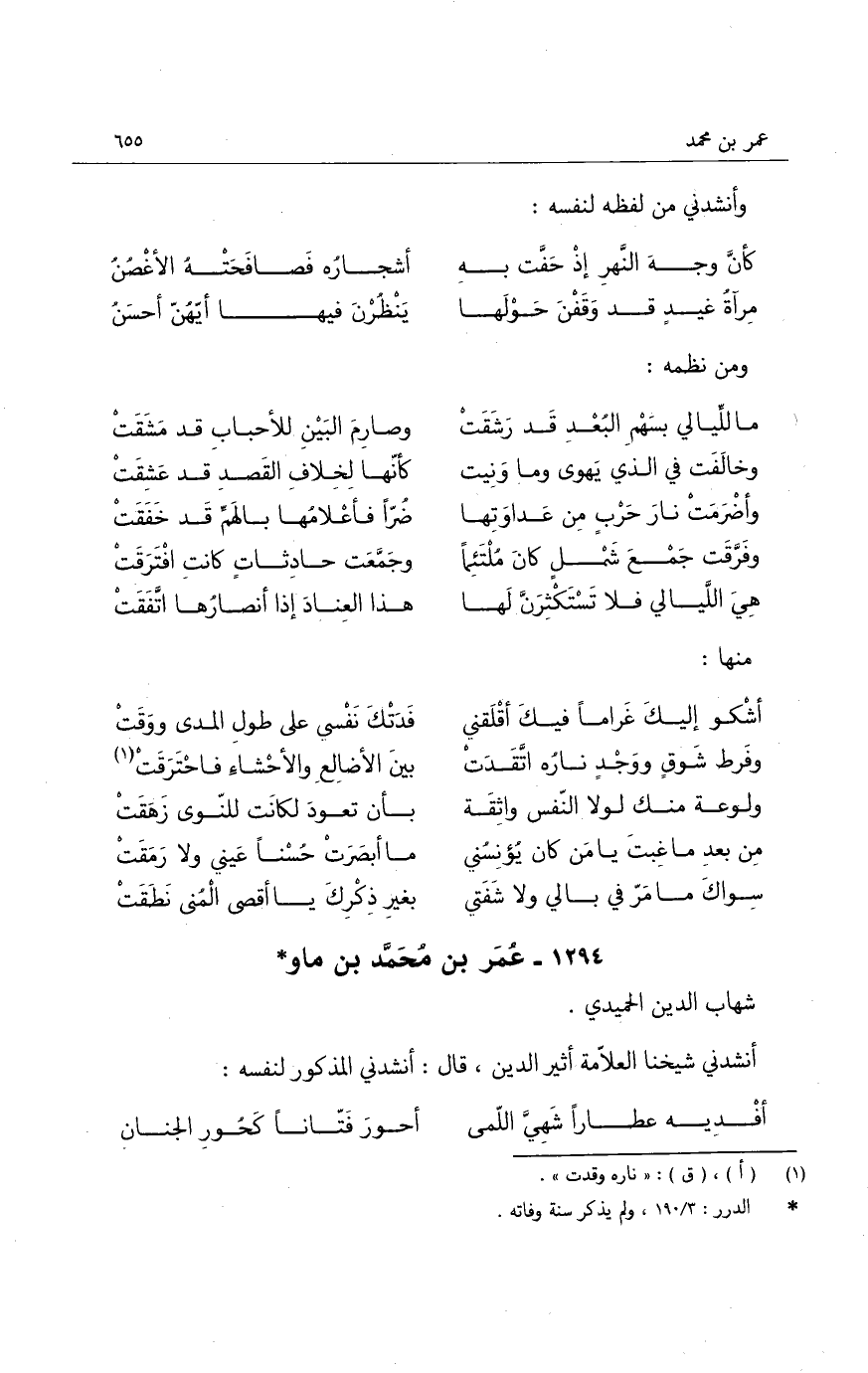 أنشدني شيخنا العلامة أثير الدين، قال: أنشدني المذكور لنفسه: