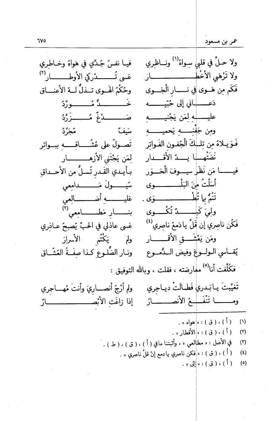 ؟ وهل يكتفي صب نوافث سامر ... بقلب سليب فاقد الصبر حاسر
