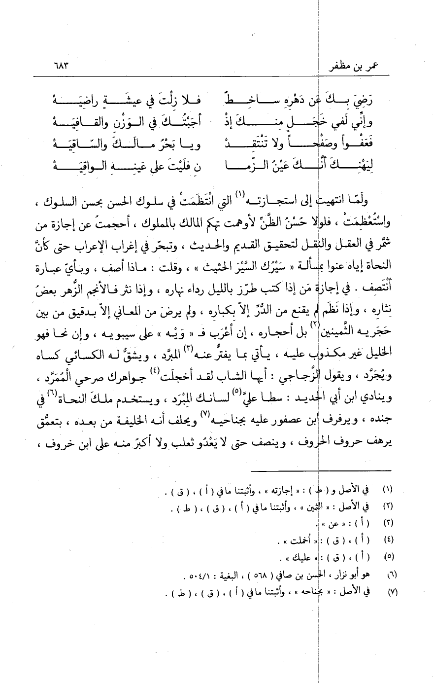 أجزت لك أيدك الله رواية الجميع عني بأفضالك، ورواية ما أدونه وأجمعه من ذلك حسبما اقترحه خاطرك العزيز واستوجبت به مدحي، فأنا المادح أنا المجيز.