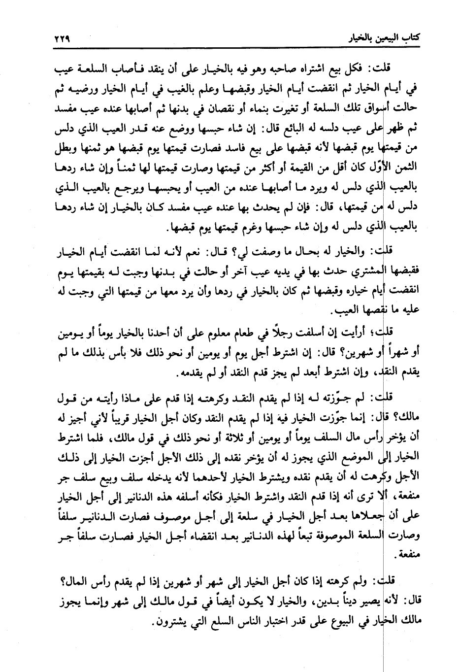 قَالَ: إنَّمَا جَوَّزْتُ الْخِيَارَ فِيهِ إذَا لَمْ يُقَدِّمْ النَّقْدَ وَكَانَ أَجَلُ الْخِيَارِ قَرِيبًا لِأَنِّي أُجِيزُ لَهُ أَنْ يُؤَخِّرَ رَأْسَ مَالِ السَّلَفِ يَوْمًا أَوْ يَوْمَيْنِ أَوْ ثَلَاثَةً أَوْ نَحْوَ ذَلِكَ فِي قَوْلِ مَالِكٍ، فَلَمَّا اشْتَرَطَ الْخِيَارَ إلَى الْمَوْضِعِ الَّذِي يَجُوزُ لَهُ أَنْ يُؤَخِّرَ نَقْدَهُ إلَى ذَلِكَ الْأَجَلِ أَجَزْتُ الْخِيَارَ إلَى ذَلِكَ الْأَجَلِ وَكَرِهْتُ لَهُ أَنْ يُقَدِّمَ نَقْدَهُ وَيَشْتَرِطَ الْخِيَارَ لِأَحَدِهِمَا لِأَنَّهُ يَدْخُلُهُ سَلَفٌ وَبَيْعٌ سَلَفٌ جَرَّ مَنْفَعَةً، أَلَا تَرَى أَنَّهُ إذَا قَدَّمَ النَّقْدَ وَاشْتَرَطَ الْخِيَارَ فَكَأَنَّهُ أَسْلَفَهُ هَذِهِ الدَّنَانِيرَ إلَى أَجَلِ الْخِيَارِ عَلَى أَنْ جَعَلَاهَا بَعْدَ أَجَلِ الْخِيَارِ فِي سِلْعَةٍ إلَى أَجَلٍ مَوْصُوفٍ فَصَارَتْ الدَّنَانِيرُ سَلَفًا وَصَارَتْ السِّلْعَةُ الْمَوْصُوفَةُ تَبَعًا لِهَذِهِ الدَّنَانِيرِ بَعْدَ انْقِضَاءِ أَجَلِ الْخِيَارِ فَصَارَتْ سَلَفًا جَرَّ مَنْفَعَةً.