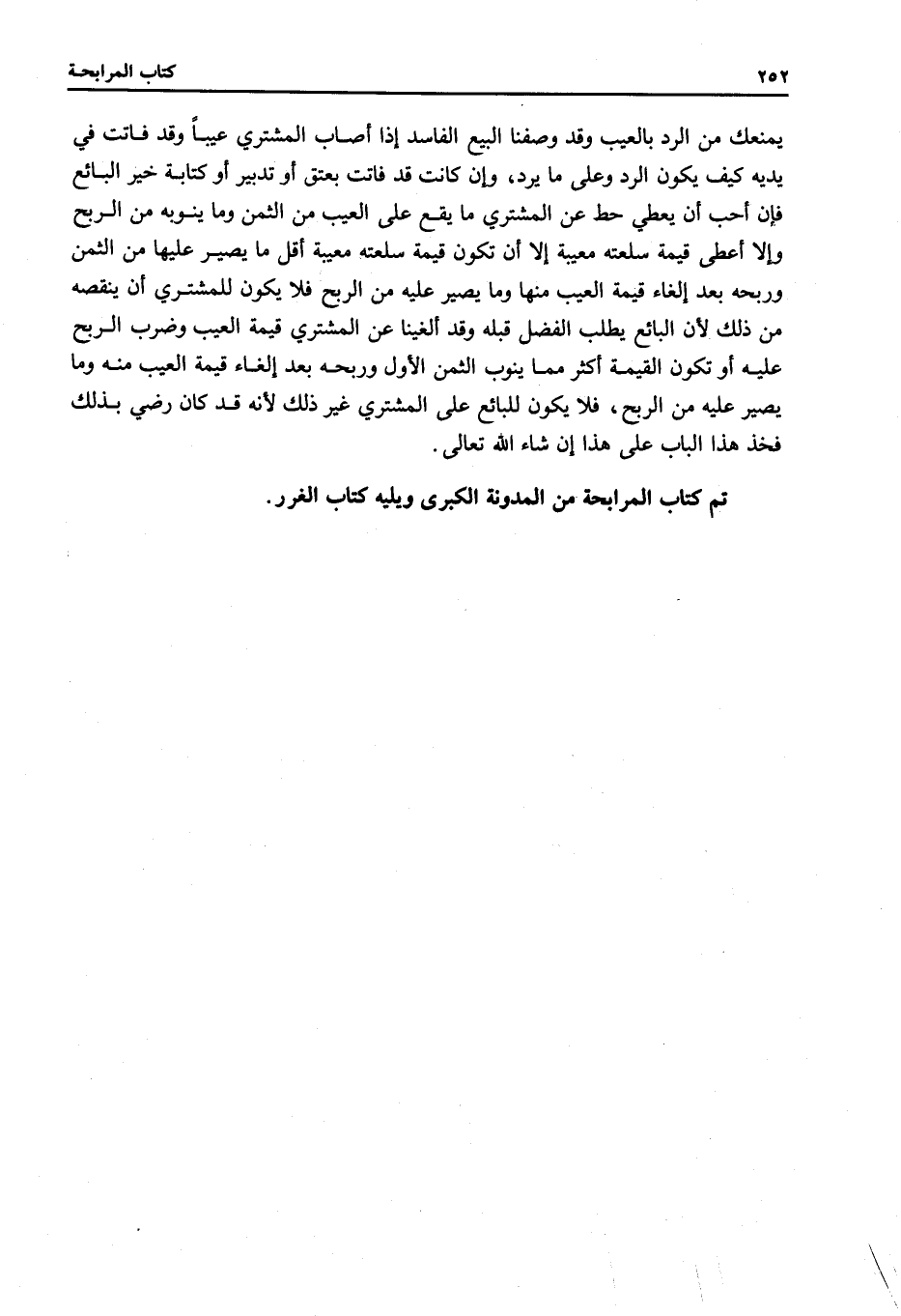 يَمْنَعُكَ مِنْ الرَّدِّ بِالْعَيْبِ وَقَدْ وَصَفْنَا الْبَيْعَ الْفَاسِدَ إذَا أَصَابَ الْمُشْتَرِي عَيْبًا وَقَدْ فَاتَتْ فِي يَدَيْهِ كَيْفَ يَكُونُ الرَّدُّ وَعَلَى مَا يَرُدُّ، وَإِنْ كَانَتْ قَدْ فَاتَتْ بِعِتْقٍ أَوْ تَدْبِيرٍ أَوْ كِتَابَةٍ خُيِّرَ الْبَائِعُ فَإِنْ أَحَبَّ أَنْ يُعْطِيَ حَطَّ عَنْ الْمُشْتَرِي مَا يَقَعُ عَلَى الْعَيْبِ مِنْ الثَّمَنِ وَمَا يَنُوبُهُ مِنْ الرِّبْحِ وَإِلَّا أَعْطَى قِيمَةَ سِلْعَتِهِ مَعِيبَةً إلَّا أَنْ تَكُونَ قِيمَةُ سِلْعَتِهِ مَعِيبَةً أَقَلَّ مَا يَصِيرُ عَلَيْهَا مِنْ الثَّمَنِ وَرِبْحِهِ بَعْدَ إلْغَاءِ قِيمَةِ الْعَيْبِ مِنْهَا وَمَا يَصِيرُ عَلَيْهِ مِنْ الرِّبْحِ فَلَا يَكُونُ لِلْمُشْتَرِي أَنْ يُنْقِصَهُ مِنْ ذَلِكَ لِأَنَّ الْبَائِعَ يَطْلُبُ الْفَضْلَ قَبْلَهُ وَقَدْ أَلْغَيْنَا عَنْ الْمُشْتَرِي قِيمَةَ الْعَيْبِ وَضَرْبِ الرِّبْحِ عَلَيْهِ أَوْ تَكُونُ الْقِيمَةُ أَكْثَرَ مِمَّا يَنُوبُ الثَّمَنُ الْأَوَّلُ وَرِبْحُهُ بَعْدَ إلْغَاءِ قِيمَةِ الْعَيْبِ مِنْهُ وَمَا يَصِيرُ عَلَيْهِ مِنْ الرِّبْحِ، فَلَا يَكُونُ لِلْبَائِعِ عَلَى الْمُشْتَرِي غَيْرُ ذَلِكَ لِأَنَّهُ قَدْ كَانَ رَضِيَ بِذَلِكَ فَخُذْ هَذَا الْبَابَ عَلَى هَذَا إنْ شَاءَ اللَّهُ تَعَالَى