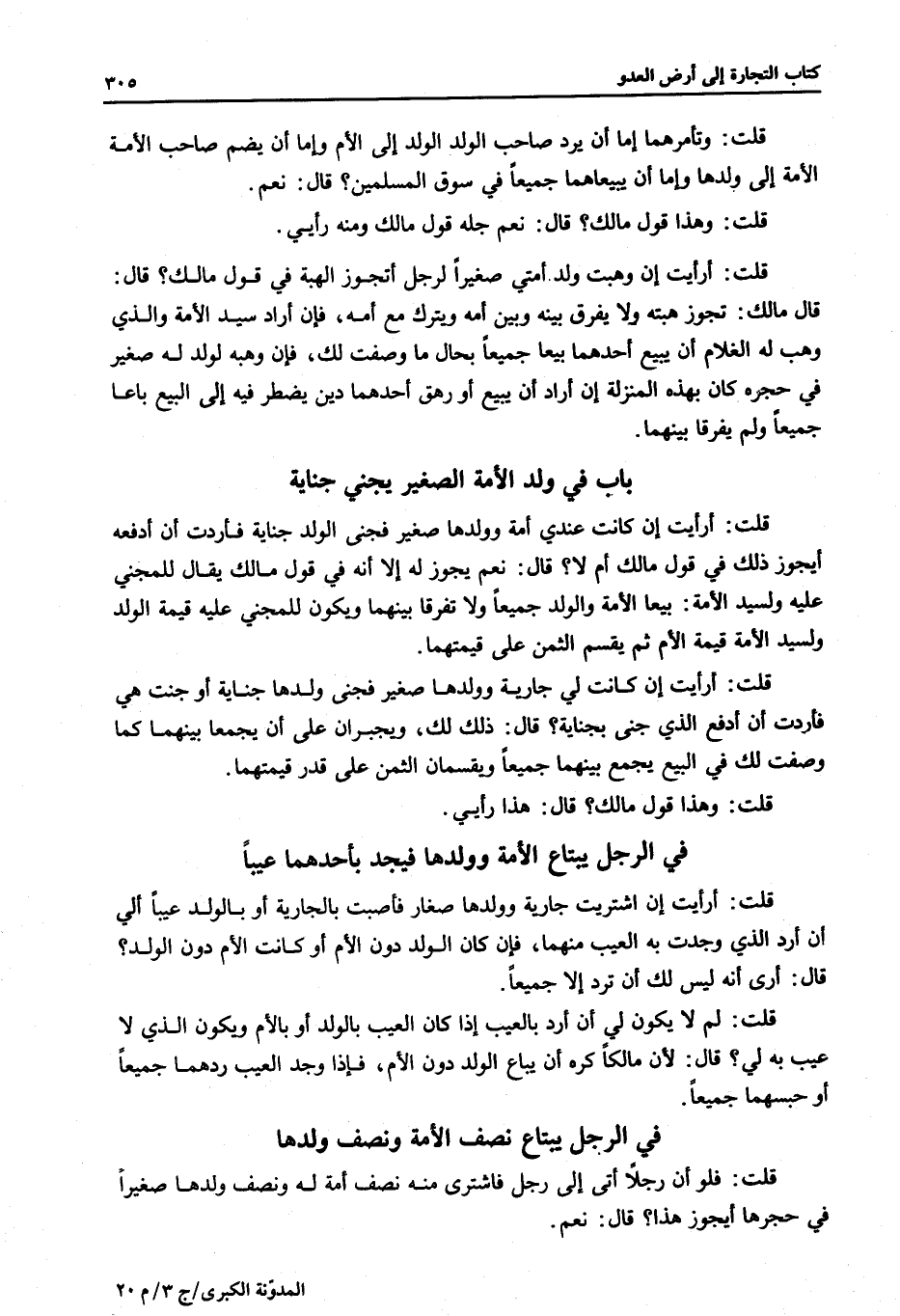 قُلْتُ: وَتَأْمُرُهُمَا إمَّا أَنْ يَرُدَّ صَاحِبُ الْوَلَدِ الْوَلَدَ إلَيْهِ الْأُمِّ وَإِمَّا أَنْ يَضُمَّ صَاحِبُ الْأَمَةِ الْأَمَةَ إلَى وَلَدِهَا وَإِمَّا أَنْ يَبِيعَاهُمَا جَمِيعًا فِي سُوقِ الْمُسْلِمِينَ؟