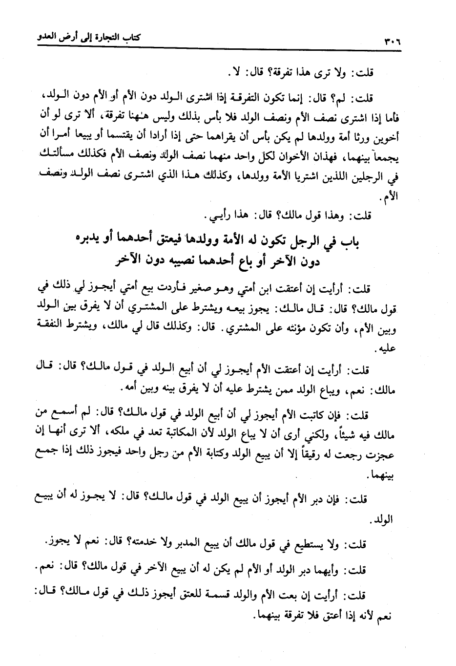 ِ أَوْ بَاعَ أَحَدَهُمَا نَصِيبَهُ دُونَ الْآخَرِ قُلْتُ: أَرَأَيْتَ إنْ أَعْتَقْت ابْنَ أَمَتِي وَهُوَ صَغِيرٌ فَأَرَدْتُ بَيْعَ أَمَتِي أَيَجُوزُ لِي ذَلِكَ فِي قَوْلِ مَالِكٍ؟