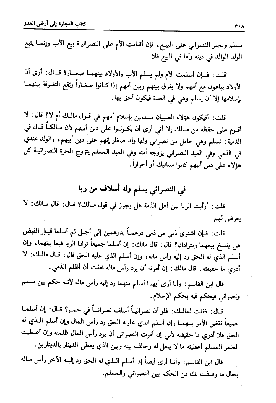فِي النَّصْرَانِيِّ يُسْلِمُ وَلَهُ أَسْلَافٌ مِنْ رِبَا قُلْتُ: أَرَأَيْتَ الرِّبَا بَيْنَ أَهْلِ الذِّمَّةِ هَلْ يَجُوزُ فِي قَوْلِ مَالِكٍ؟