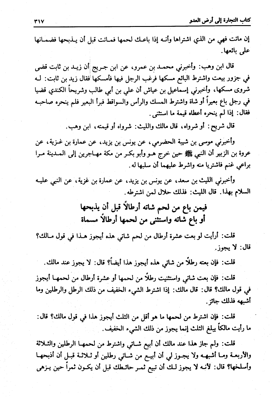 قُلْتُ: فَإِنْ بِعْتُ شَاتِي وَاسْتَثْنَيْت رَطْلًا مِنْ لَحْمِهَا أَوْ عَشْرَةَ أَرْطَالٍ مِنْ لَحْمِهَا أَيَجُوزُ فِي قَوْلِ مَالِكٍ؟