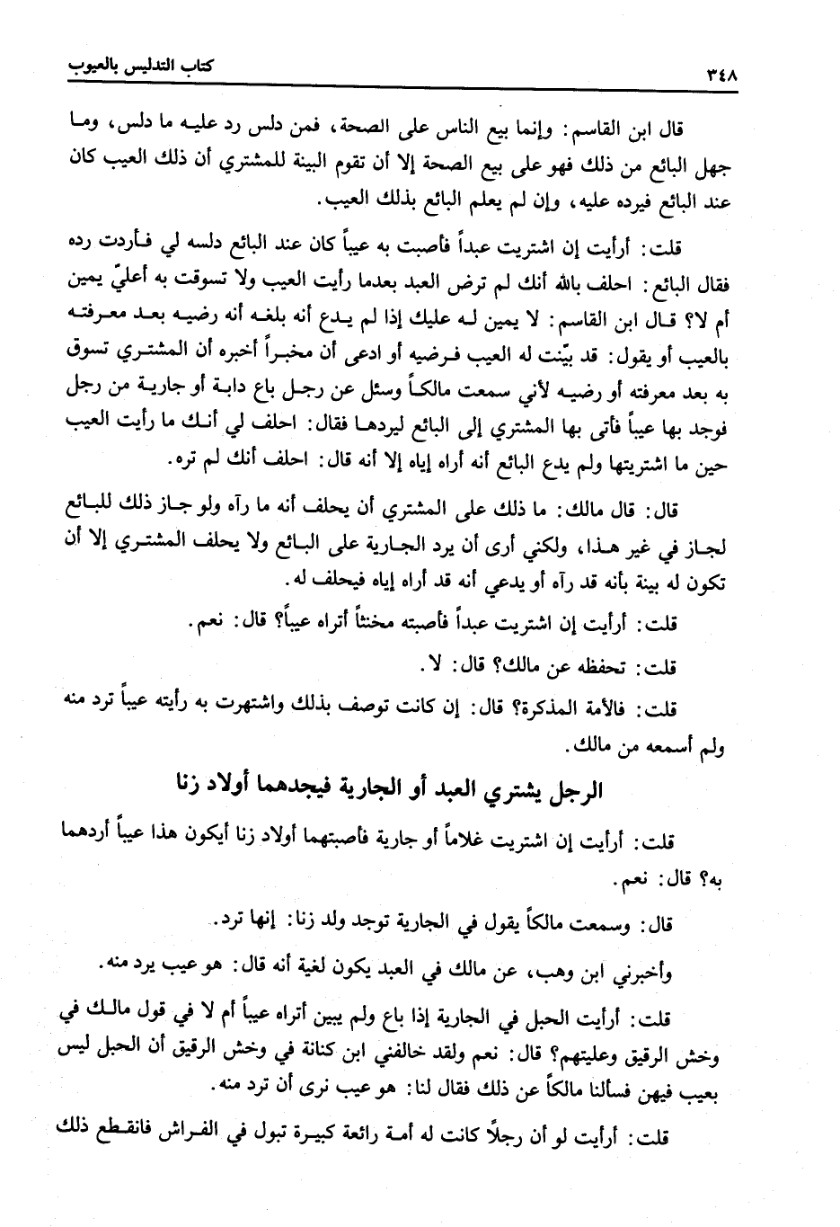 قَالَ: وَسَمِعْتُ مَالِكًا يَقُولُ فِي الْجَارِيَةِ تُوجِدُ وَلَدَ زِنًا: أَنَّهَا تُرَدُّ. وَأَخْبَرَنِي ابْنُ وَهْبٍ عَنْ مَالِكٍ فِي الْعَبْدِ يَكُونُ لَغِيَّةً أَنَّهُ قَالَ: هُوَ عَيْبٌ يُرَدُّ مِنْهُ
