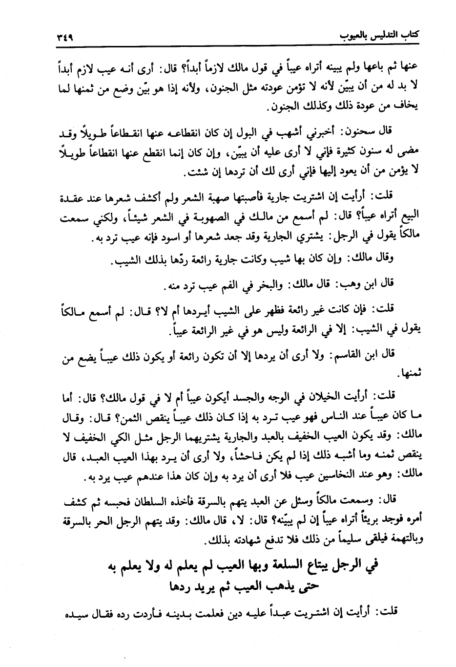 قَالَ: وَسَمِعْتُ مَالِكًا وَسُئِلَ عَنْ الْعَبْدِ يُتَّهَمُ بِالسَّرِقَةِ فَأَخَذَهُ السُّلْطَانُ فَحَبَسَهُ ثُمَّ كُشِفَ أَمْرُهُ فَوُجِدَ بَرِيئًا أَتَرَاهُ عَيْبًا إنْ لَمْ يُبَيِّنْهُ؟ قَالَ: لَا، قَالَ مَالِكٌ: وَقَدْ يُتَّهَمُ الرَّجُلُ الْحُرُّ بِالسَّرِقَةِ وَبِالتُّهْمَةِ فَيُلْقَى سَلِيمًا مِنْ ذَلِكَ فَلَا تُدْفَعُ شَهَادَتُهُ بِذَلِكَ