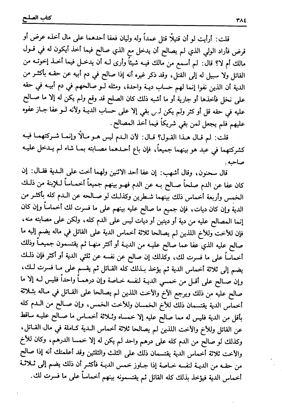 قُلْتُ: أَرَأَيْتَ لَوْ أَنَّ قَتِيلًا قُتِلَ عَمْدًا وَلَهُ وَلِيَّانِ فَعَفَا أَحَدُهُمَا عَلَى مَالٍ أَخَذَهُ عَرَضٍ أَوْ قَرْضٍ فَأَرَادَ الْوَلِيُّ الَّذِي لَمْ يُصَالِحْ أَنْ يَدْخُلَ مَعَ الَّذِي صَالَحَ فِيمَا أَخَذَ أَيَكُونُ لَهُ فِي قَوْلِ مَالِكٍ أَمْ لَا؟ قَالَ لَمْ أَسْمَعْ مِنْ مَالِكٍ فِيهِ شَيْئًا وَأَرَى لَهُ أَنْ يَدْخُلَ فِيمَا أَخَذَ إخْوَتُهُ مِنْ الْقَاتِلِ وَلَا سَبِيلَ لَهُ إلَى الْقَتْلِ، وَقَدْ ذَكَرَ غَيْرُهُ أَنَّهُ إذَا صَالَحَ فِي دَمِ أَبِيهِ عَنْ حَقِّهِ بِأَكْثَرَ مِنْ الدِّيَةِ أَنَّ الَّذِينَ نَفَوْا إنَّمَا لَهُمْ حِسَابُ دِيَةٍ وَاحِدَةٍ، وَمِثْلُهُ لَوْ صَالَحَهُمْ فِي دَمِ أَبِيهِ فِي حَقِّهِ عَلَى نَخْلٍ فَأَخَذَهَا أَوْ جَارِيَةٍ أَوْ مَا أَشْبَهَ ذَلِكَ كَانَ الصُّلْحُ قَدْ وَقَعَ وَلَمْ يَكُنْ لَهُ إلَّا مَا صَالَحَ عَلَيْهِ فِي حَقِّهِ - قَلَّ أَوْ كَثُرَ - وَلَمْ يَكُنْ لِمَنْ بَقِيَ إلَّا عَلَى حِسَابِ الدِّيَةِ وَلِأَنَّهُ لَوْ عَفَا جَازَ عَفْوُهُ عَلَيْهِمْ فَلَمْ يُجْعَلْ لِمَنْ بَقِيَ شَرِيكًا فِيمَا أَخَذَ الْمُصَالِحُ.
