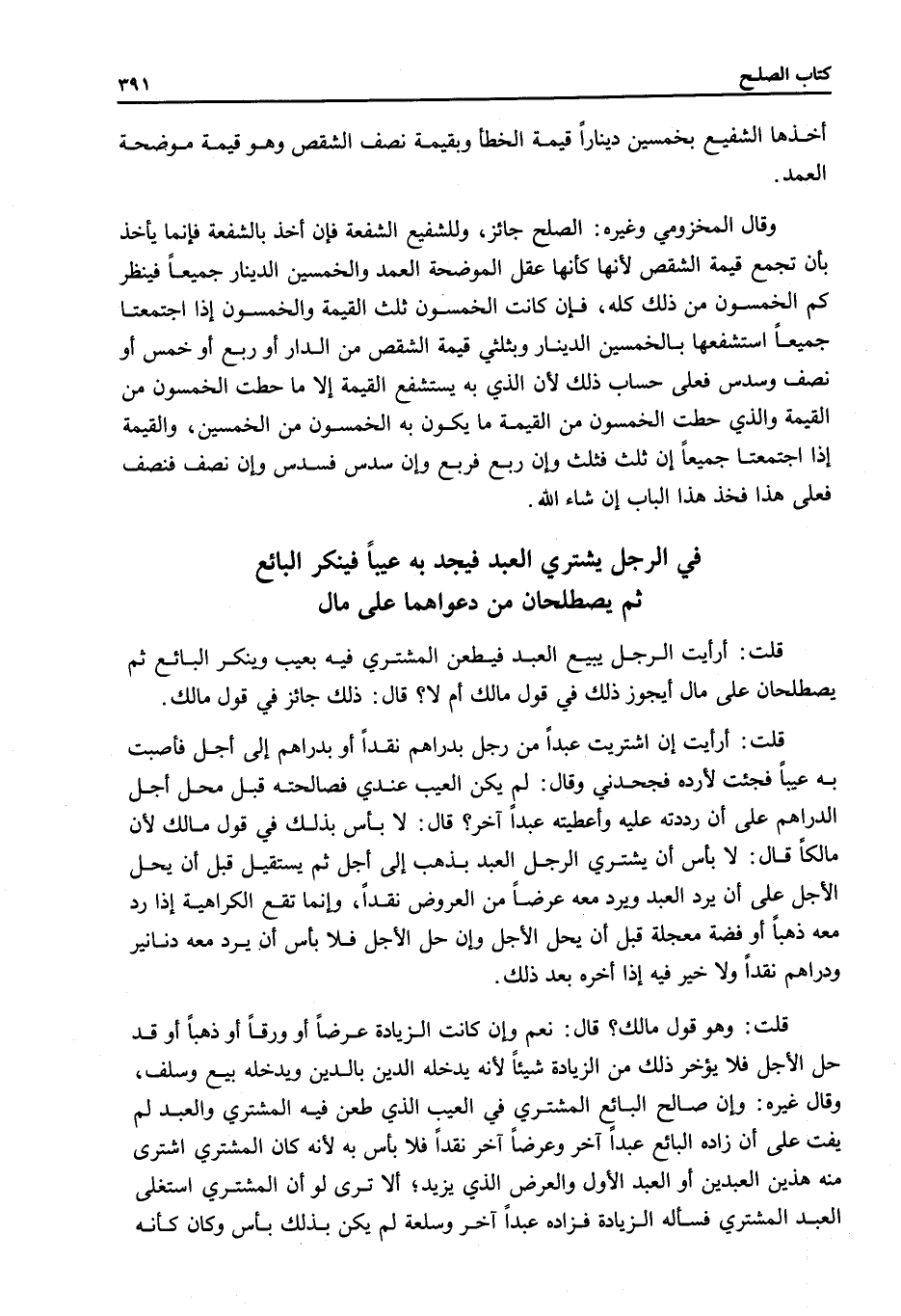 قَالَ: نَعَمْ وَإِنْ كَانَتْ الزِّيَادَةُ عَرَضًا أَوْ وَرِقًا أَوْ ذَهَبًا أَوْ قَدْ حَلَّ الْأَجَلُ فَلَا يُؤَخِّرُ ذَلِكَ مِنْ الزِّيَادَةِ شَيْئًا لِأَنَّهُ يَدْخُلُهُ الدَّيْنُ بِالدَّيْنِ وَيَدْخُلُهُ بَيْعٌ وَسَلَفٌ، وَقَالَ غَيْرُهُ: وَإِنْ صَالَحَ الْبَائِعُ الْمُشْتَرِيَ فِي الْعَيْبِ الَّذِي طَعَنَ فِيهِ الْمُشْتَرِي وَالْعَبْدُ لَمْ يَفُتْ عَلَى أَنْ زَادَهُ الْبَائِعُ عَبْدًا آخَرَ وَعَرَضًا آخَرَ نَقْدًا فَلَا بَأْسَ بِهِ لِأَنَّهُ كَانَ الْمُشْتَرِي اشْتَرَى مِنْهُ هَذَيْنِ الْعَبْدَيْنِ أَوْ الْعَبْدَ الْأَوَّلَ وَالْعَرَضَ الَّذِي يَزِيدُ؛ أَلَا تَرَى لَوْ أَنَّ الْمُشْتَرِيَ اسْتَغْلَى الْعَبْدَ الْمُشْتَرَى فَسَأَلَهُ الزِّيَادَةَ فَزَادَهُ عَبْدًا آخَرَ وَسِلْعَةً لَمْ يَكُنْ بِذَلِكَ بَأْسٌ وَكَانَ كَأَنَّهُ