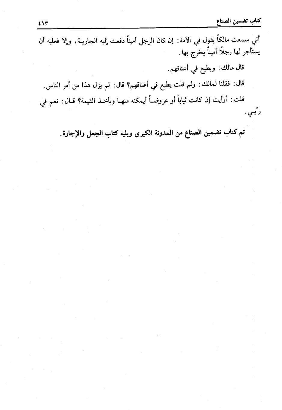 قَالَ: لَمْ يَزُلْ هَذَا مِنْ أَمْرِ النَّاسِ قُلْتُ: أَرَأَيْتَ إنْ كَانَتْ ثِيَابًا أَوْ عُرُوضًا أَيُمَكِّنَّهُ مِنْهَا وَيَأْخُذُ الْقِيمَةَ؟
