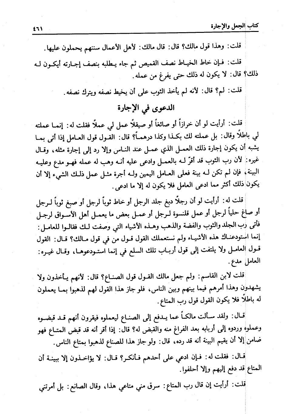 ِ قُلْتُ: أَرَأَيْتَ لَوْ أَنَّ خَرَّازًا أَوْ صَائِغًا أَوْ صَيْقَلًا عَمَلَ لِي عَمَلًا فَقُلْتُ لَهُ: إنَّمَا عَمِلْتَهُ لِي بَاطِلًا وَقَالَ: بَلْ عَمِلْتُهُ لَكَ بِكَذَا وَكَذَا دِرْهَمًا؟