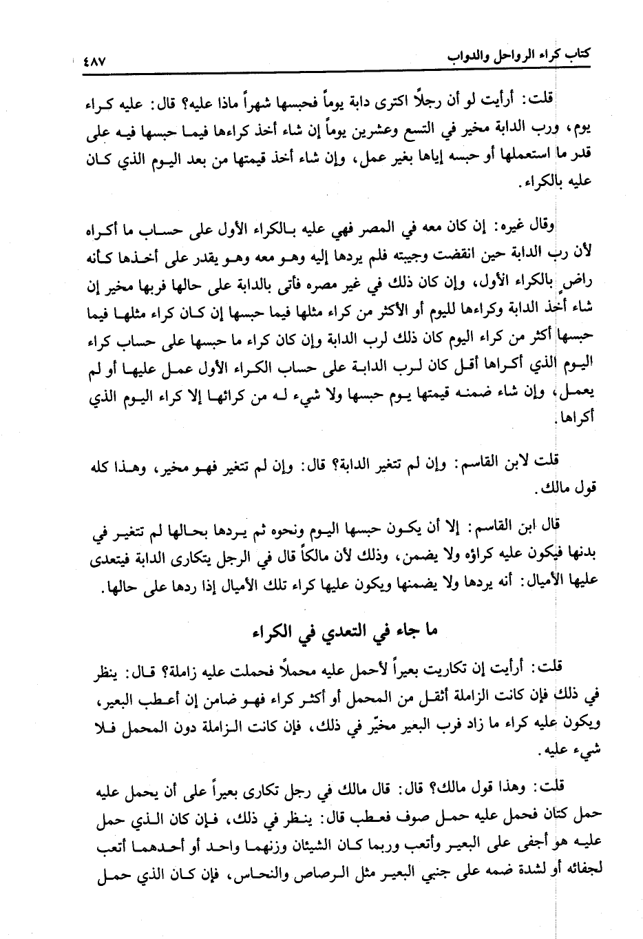 مَا جَاءَ فِي التَّعَدِّي فِي الْكِرَاءِ قُلْتُ: أَرَأَيْتَ إنْ تَكَارَيْتُ بَعِيرًا لِأَحْمِلَ عَلَيْهِ مَحْمَلًا فَحَمَلْتُ عَلَيْهِ زَامِلَةً؟