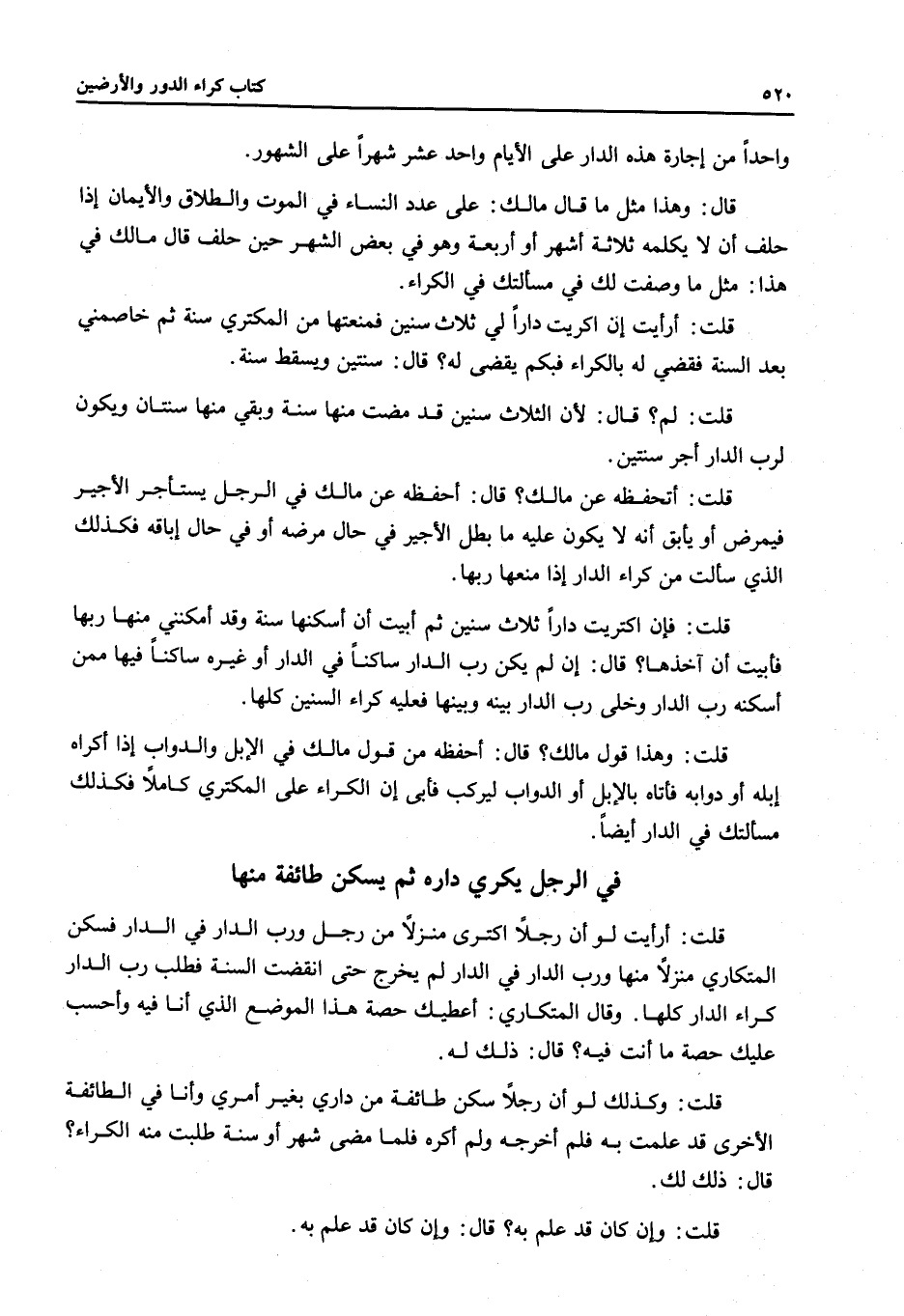 قَالَ: أَحْفَظُهُ مِنْ قَوْلِ مَالِكٍ فِي الْإِبِلِ وَالدَّوَابِّ إذَا أَكْرَاهُ إبِلَهُ أَوْ دَوَابَّهُ فَأَتَاهُ بِالْإِبِلِ أَوْ الدَّوَابِّ لِيَرْكَبَ فَأَبَى أَنَّ الْكِرَاءَ عَلَى الْمُكْتَرِي كَامِلًا فَكَذَلِكَ مَسْأَلَتُكَ فِي الدَّارِ أَيْضًا.
