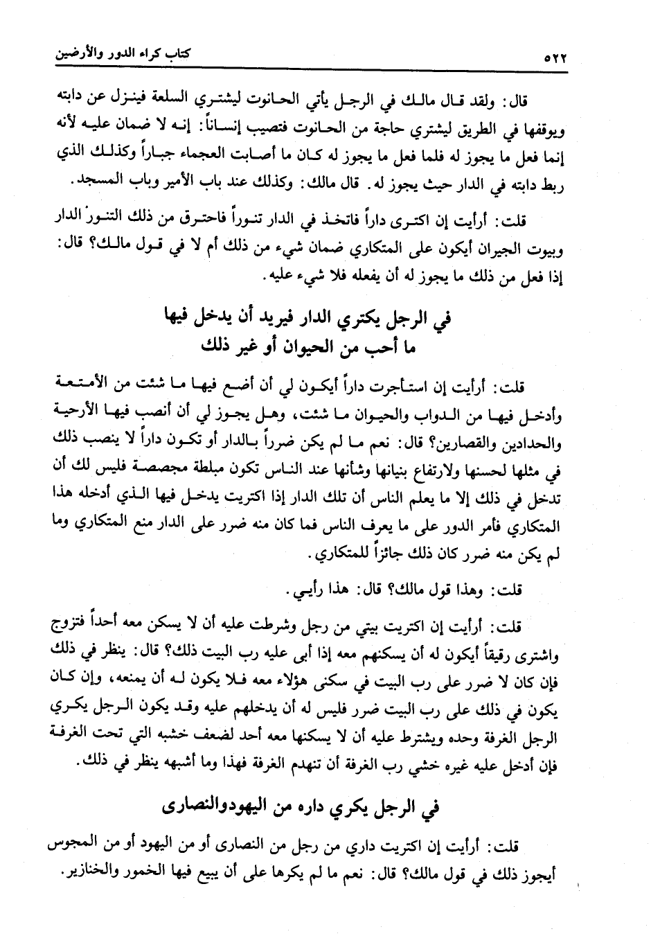 فِي الرَّجُلِ يُكْرِي دَارِهِ مِنْ الْيَهُودِ وَالنَّصَارَى قُلْتُ: أَرَأَيْتَ إنْ اكْتَرَيْت دَارِي مَنْ رَجُلٍ مِنْ النَّصَارَى أَوْ مَنْ الْيَهُودِ أَوْ مِنْ الْمَجُوسِ أَيَجُوزُ ذَلِكَ فِي قَوْلِ مَالِكٍ؟