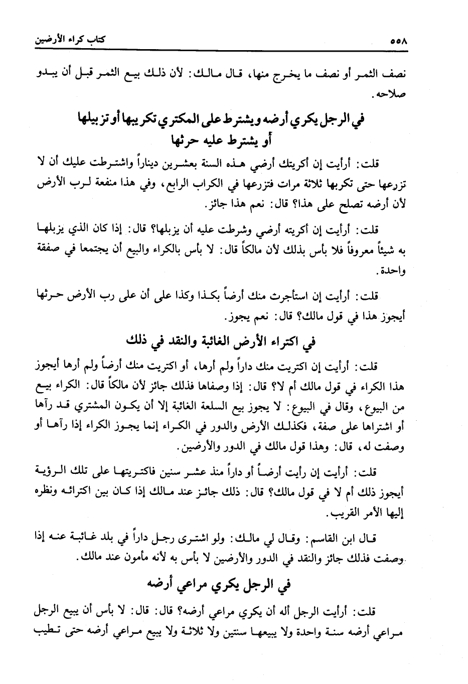 فِي الرَّجُلِ يُكْرِي مَرَاعِيَ أَرْضِهِ قُلْتُ: أَرَأَيْتَ الرَّجُلَ أَلَهُ أَنْ يُكْرِيَ مَرَاعِيَ أَرْضِهِ؟