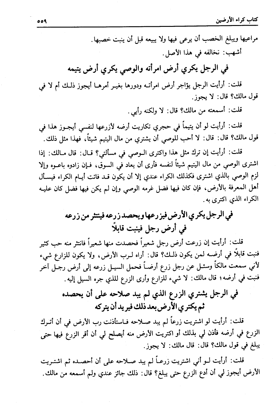 قُلْتُ: أَرَأَيْتَ لَوْ أَنَّ يَتِيمًا فِي حِجْرِي تَكَارَيْتُ أَرْضَهُ لِأَزْرَعَهَا لِنَفْسِي أَيَجُوزُ هَذَا فِي قَوْلِ مَالِكٍ؟