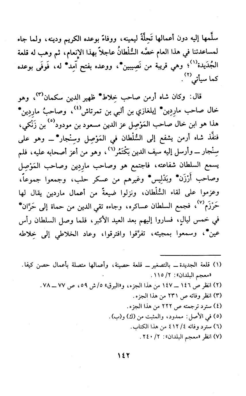 سلمهَا إِلَيْهِ دون أَعمالهَا تَحِلَّة ليمينه ووفاء بوعده الْكَرِيم وَدينه وَلما جَاءَ لمساعدتنا فِي هَذَا الْعَام خصّه السُّلْطَان عَاجلا بِهَذَا الإنعام ثمَّ وهب لَهُ قلعة الجديدة وَهِي قريبَة من نَصِيبين ووعده بِفَتْح آمد لَهُ فوفى بوعده كَمَا سَيَأْتِي