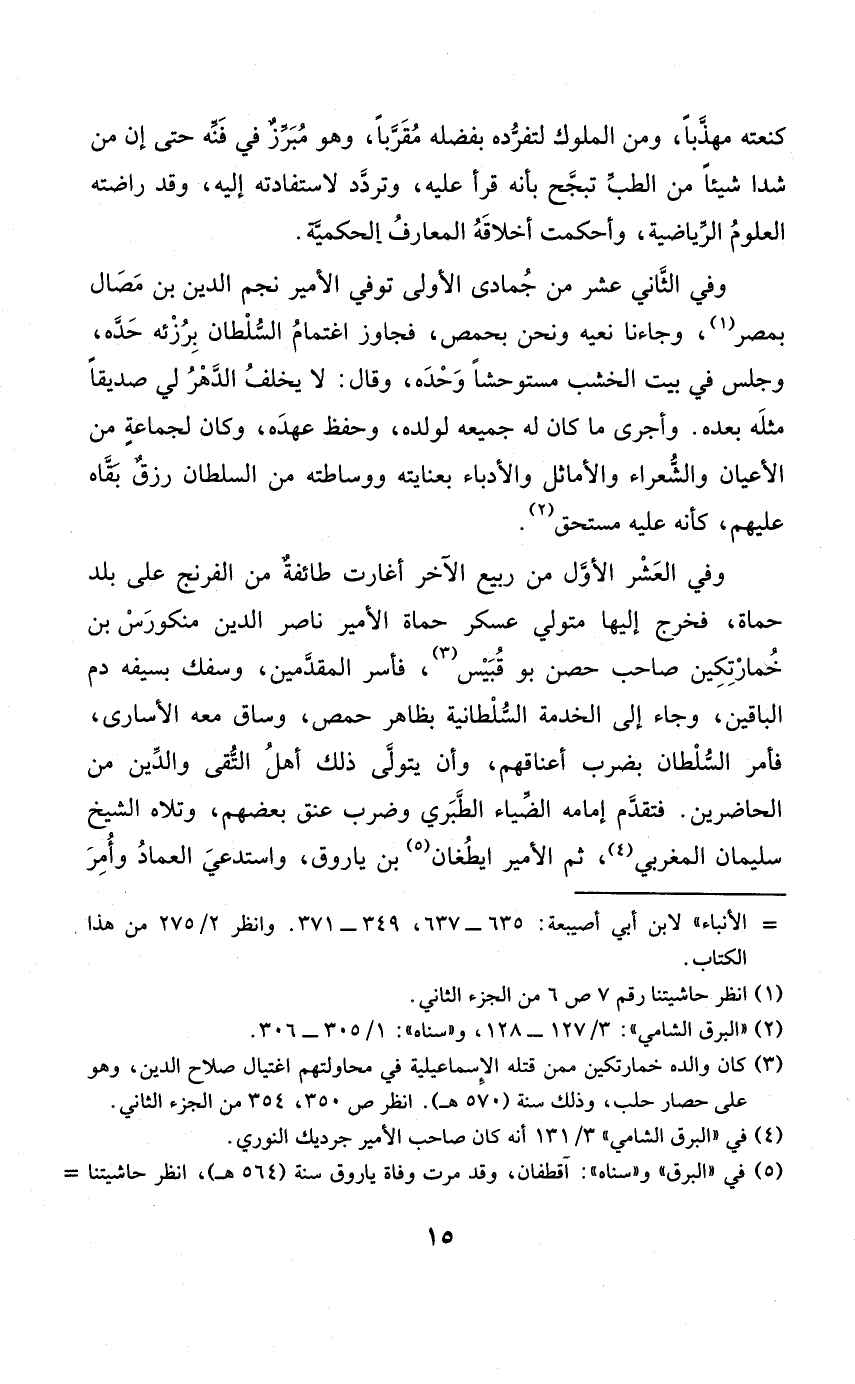 كنعته مهذبا وَمن الْمُلُوك لِتَفَرُّدِهِ بفضله مقربا وَهُوَ مبرز فِي فنه حَتَّى إِن من شدا شَيْئا من الطِّبّ تبجح بِأَنَّهُ قَرَأَ عَلَيْهِ وَتردد لاستفادته إِلَيْهِ وَقد راضته الْعُلُوم الرياضية وأحكمت أخلاقه المعارف الْحكمِيَّة