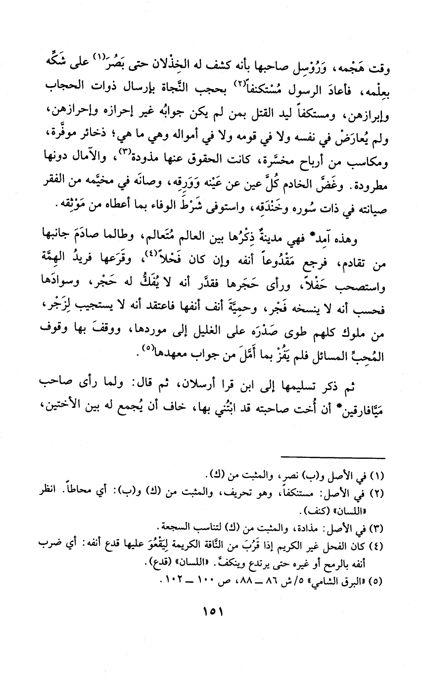ثمَّ ذكر تَسْلِيمهَا إِلَى ابْن قرا أرسلان ثمَّ قَالَ وَلما رأى صَاحب ميافارقين أَن أُخْت صاحبته قد ابتني بهَا خَافَ أَن يجمع لَهُ بَين الْأُخْتَيْنِ