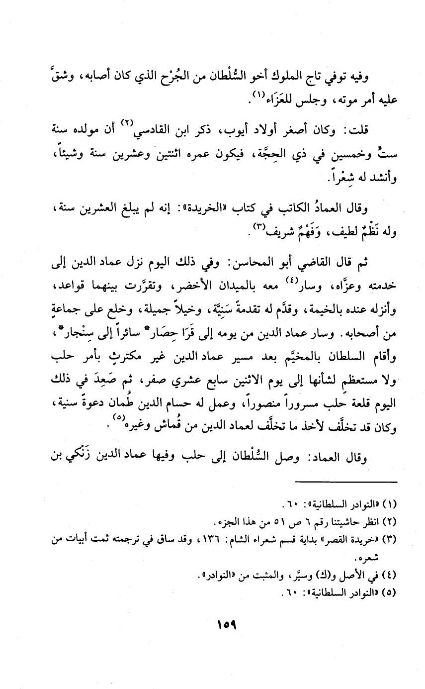وَقَالَ الْعِمَاد وصل السُّلْطَان إِلَى حلب وفيهَا عماد الدّين زنكي بن