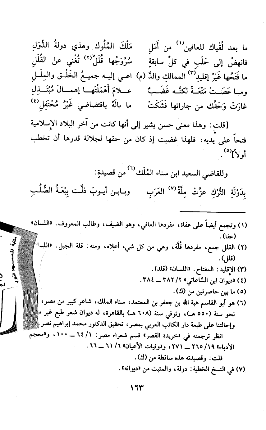وللقاضي السعيد ابْن سناء الْملك من قصيدة