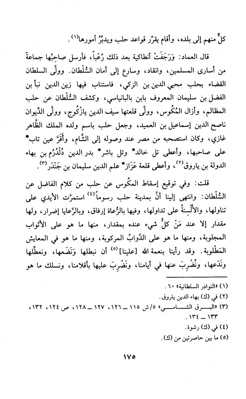 قلت وَفِي توقيع إِسْقَاط المكوس عَن حلب من كَلَام الْفَاضِل عَن السُّلْطَان وانْتهى إِلَيْنَا أَن بِمَدِينَة حلب رسوما استمرت الْأَيْدِي على تنَاولهَا والألسنة على تداولها وفيهَا بالرعاة إرفاق وبالرعايا إِضْرَار وَلها مِقْدَار إِلَّا عِنْد من كل شَيْء عِنْده بِمِقْدَار مِنْهَا مَا هُوَ على الأثواب المجلوبة وَمِنْهَا مَا هُوَ على الدَّوَابّ المركوبة وَمِنْهَا مَا هُوَ فِي المعايش الْمَطْلُوبَة