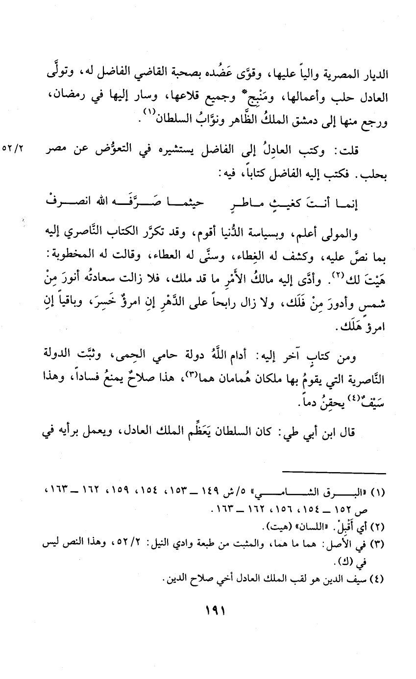 قلت وَكتب الْعَادِل إِلَى الْفَاضِل يستشيره فِي التعوض عَن مصر بحلب