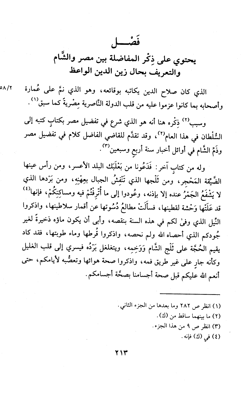فصل يحتوي على ذكر المفاضلة بَين مصر وَالشَّام والتعريف بِحَال زين الدّين الْوَاعِظ