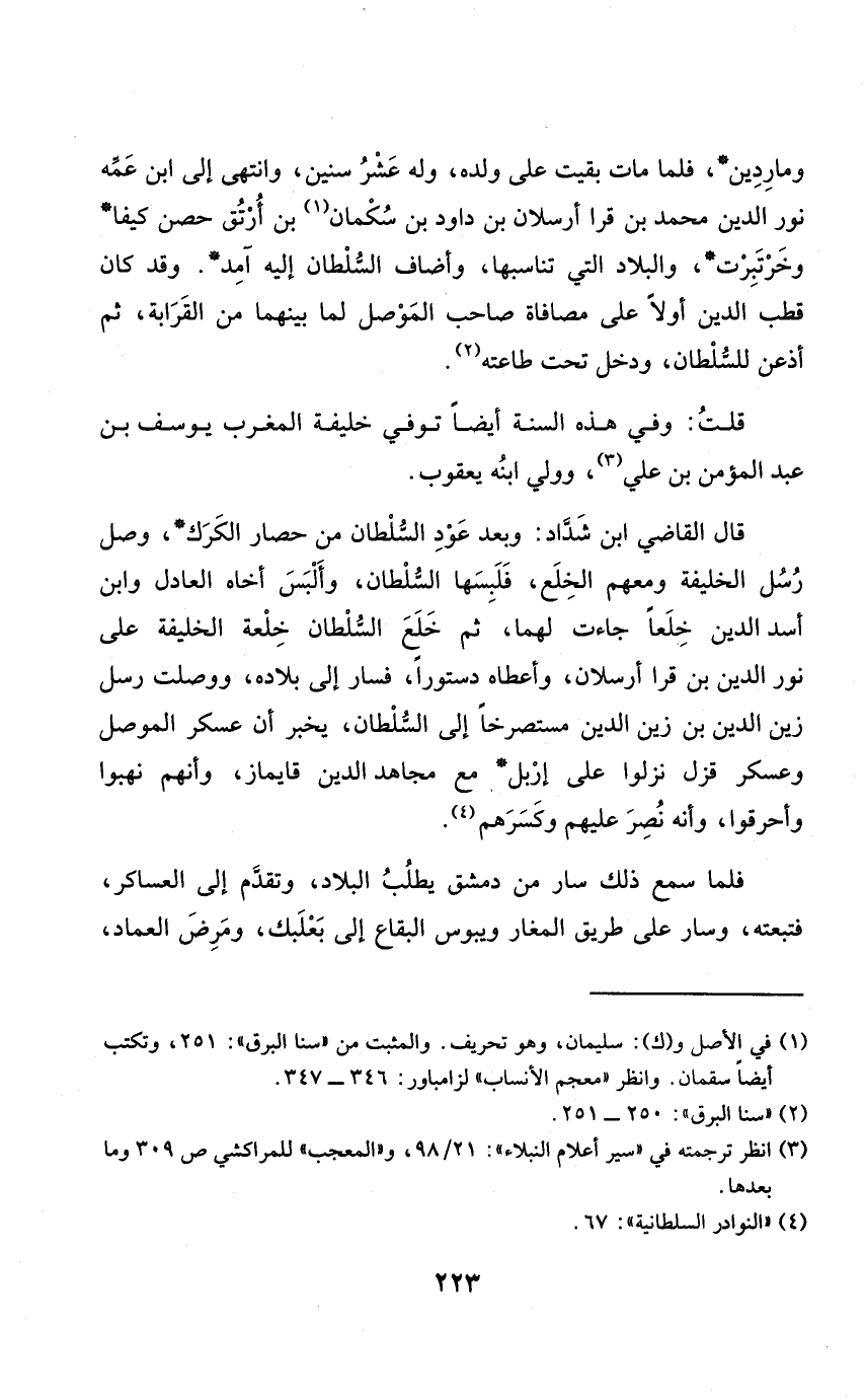 وماردين فَلَمَّا مَاتَ بقيت على وَلَده وَله عشر سِنِين وانْتهى إِلَى ابْن عَمه نور الدّين مُحَمَّد بن قرا أرسلان بن دَاوُد بن سكمان بن أرتق حصن كيفا وخرتبرت والبلاد الَّتِي تناسبها وأضاف السُّلْطَان إِلَيْهِ آمد