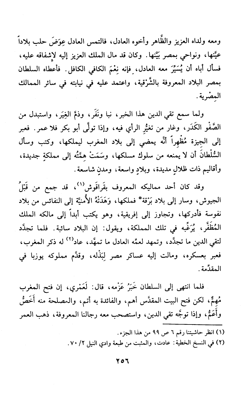 فَلَمَّا انْتهى إِلَى السُّلْطَان خبر عزمه قَالَ لعمري إِن فتح الْمغرب مُهِمّ لَكِن فتح الْبَيْت الْمُقَدّس أهم والفائدة بِهِ أتم والمصلحة مِنْهُ أخص وأعم وَإِذا توجه تَقِيّ الدّين واستصحب مَعَه رجالنا الْمَعْرُوفَة ذهب الْعُمر