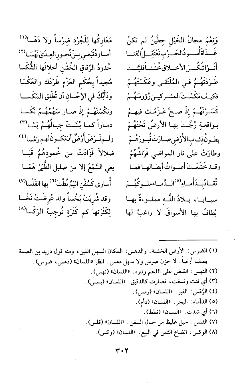 (تقاد بَدَأَ مَاء الدِّمَاء مُلُوكهمْ ... أُسَارَى كسفن اليم نطت بهَا القلسا)