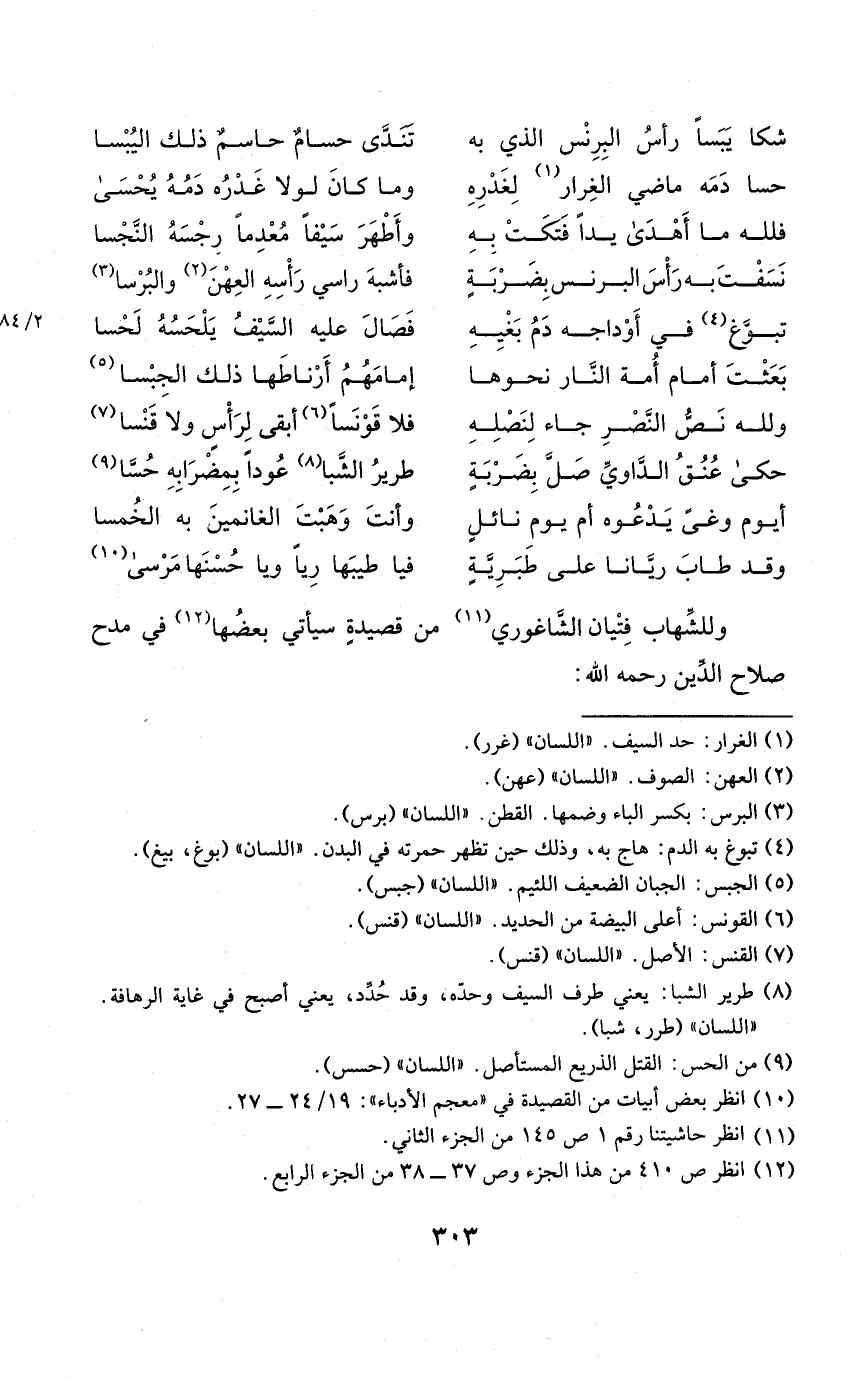 وللشهاب فتيَان الشاغوري من قصيدة سَيَأْتِي بَعْضهَا فِي مدح صَلَاح الدّين رَحمَه الله